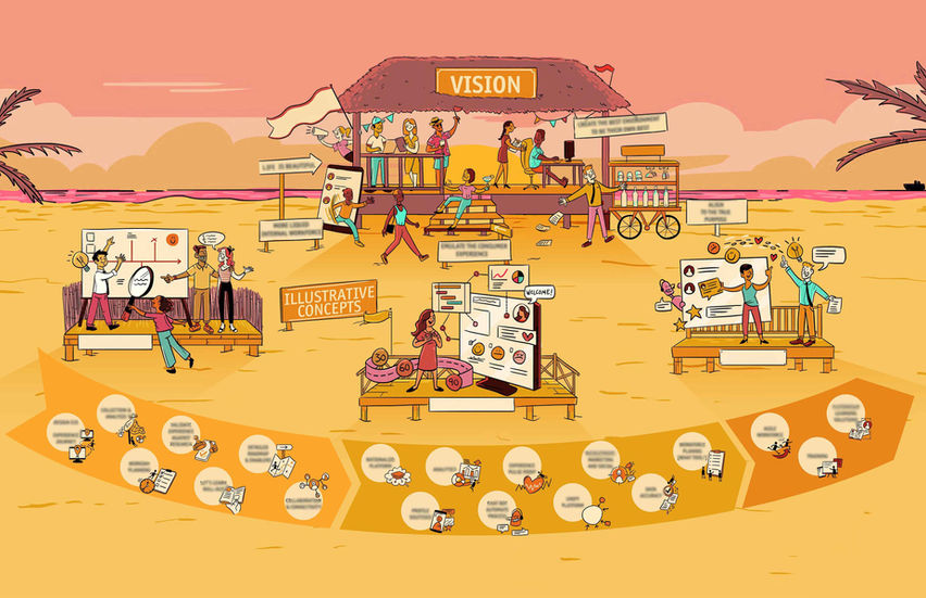 Whether you are pitching an idea, simplifying a presentation, a roadmap, or defining a vision; investing time and effort upfront in the drafting and development stage of an Infovisual will enable you to effortlessly talk through different concepts and their relationships as a systemic whole.